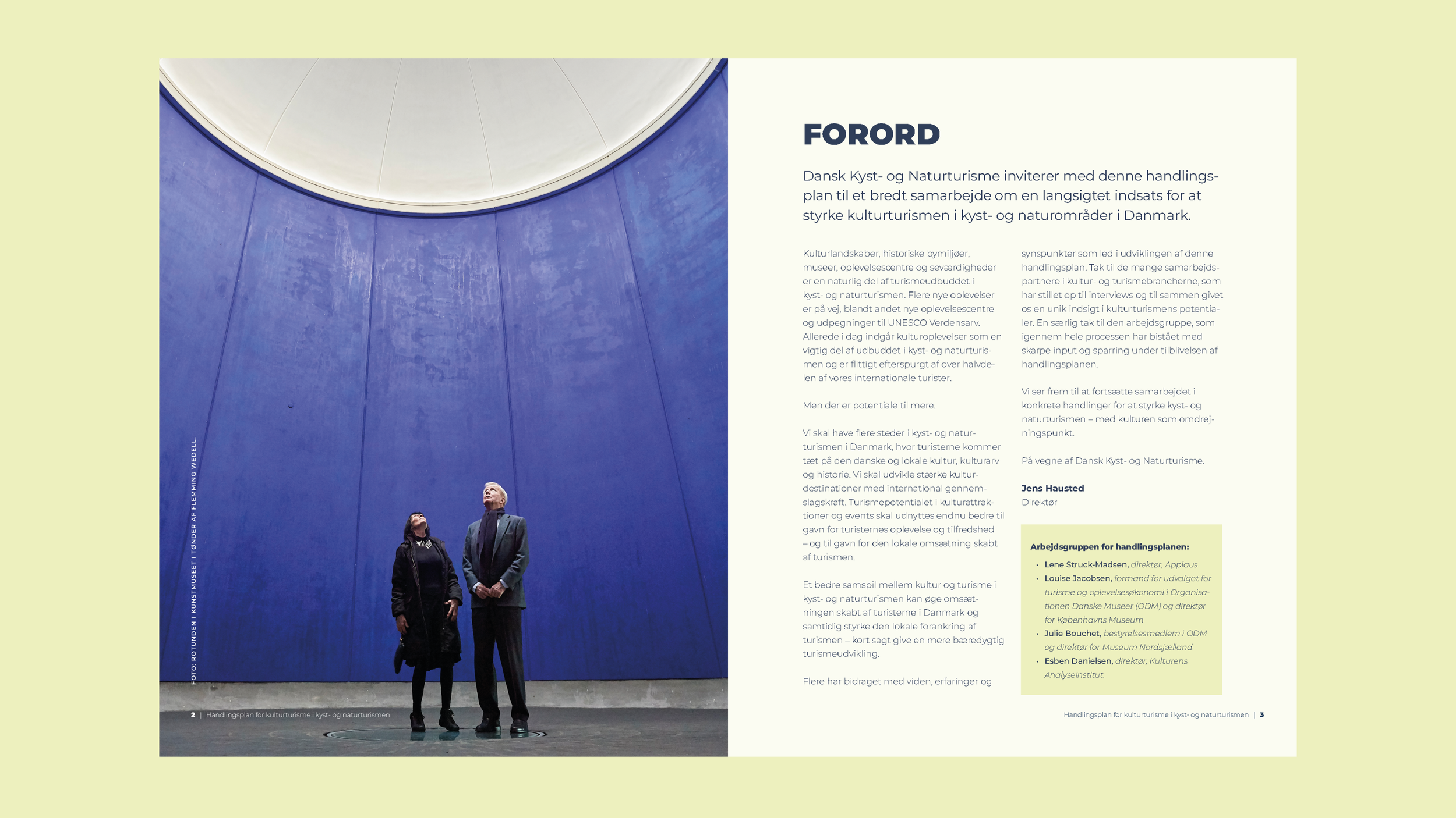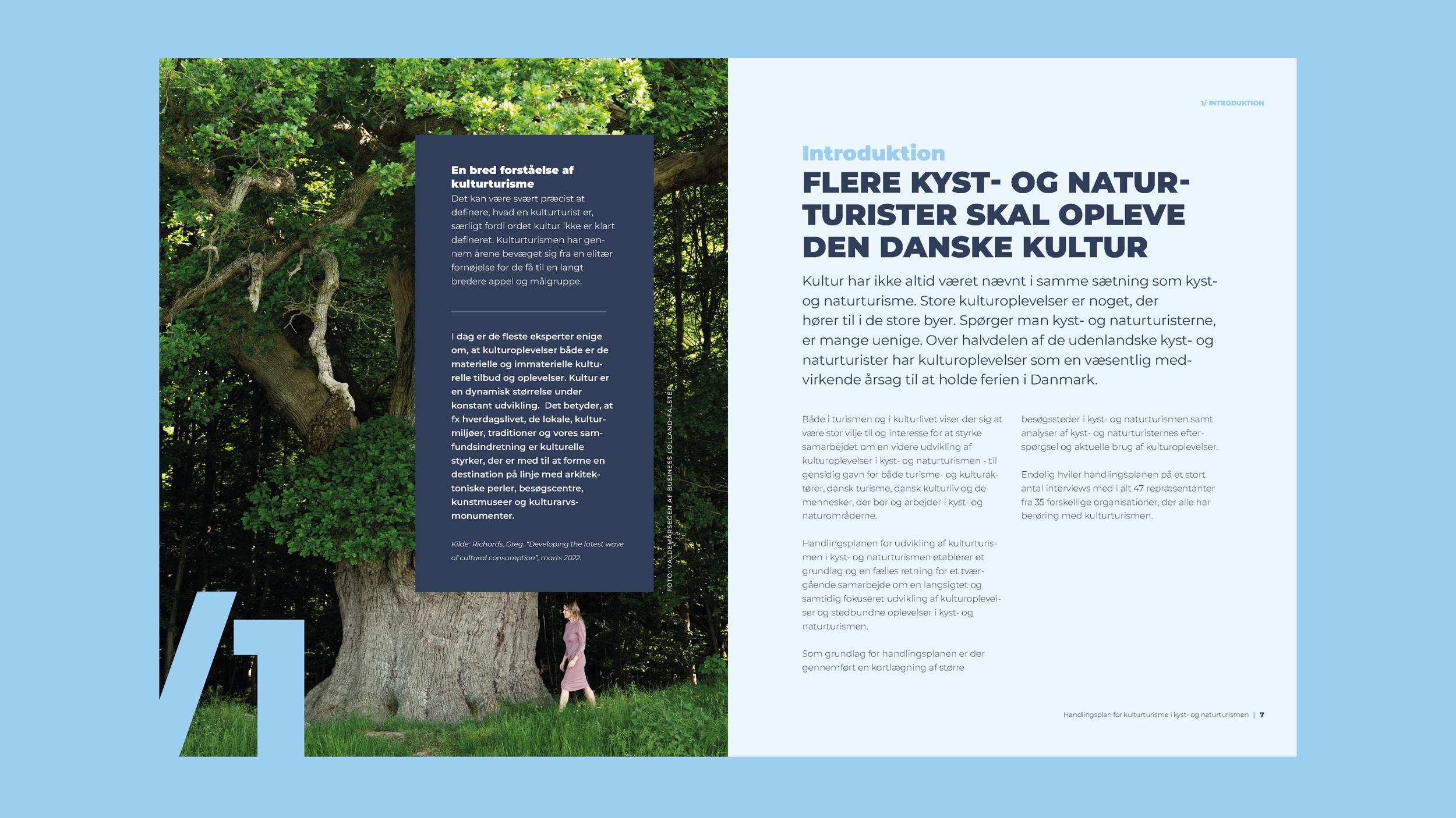I tæt samarbejde med Louise Örnfelt og Dansk Kyst- og Naturturisme (DKNT) har jeg layoutet handlingsplanen for udvikling af kulturturisme i kyst- og naturturisme. Målet med handlingsplanen er at styrke kultur- og kulturarvsoplevelser i kyst- og naturturismen.