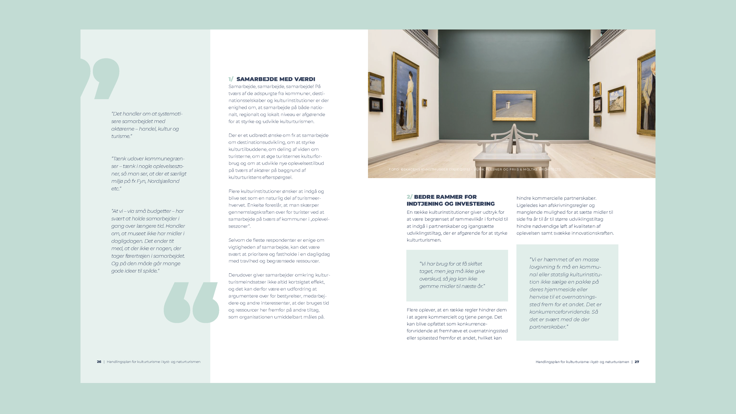 “Planen bygger på en række omfattende analyser af kyst- og naturturisternes efterspørgsel og brug af kulturoplevelser samt et stort antal interviews med organisationer, der alle har berøring med kulturturismen samt input fra eksperter.”