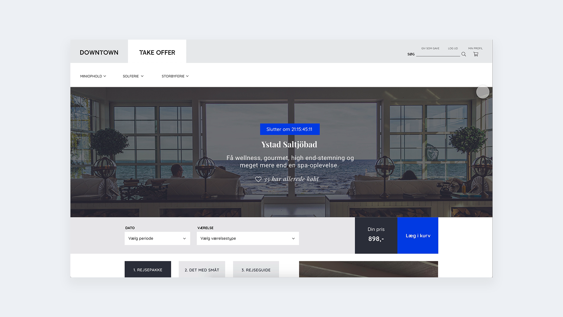 I 2017 blev de to danske dealsites Downtown og Take Offer fusioneret. Med fokus på Downtown og Take Offers oprindelige fortælling; At alle skal have råd til at skabe oplevelser. Er der med den nye visuel identitet skabt en større sammenhængskraft mellem begge brands - og den digitale platform gør det nu muligt for kunderne at swipe mellem oplevelserne og kombinere dem på kryds og tværs - fortsat til en god pris.